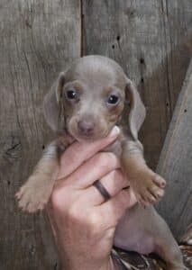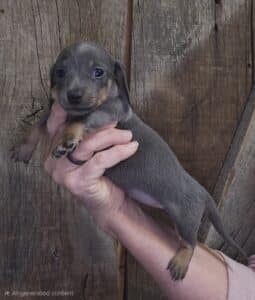 This is Lil Peb’s blue and tan smooth hair male AKC miniature Dachshund puppy #1 born 12-16-25