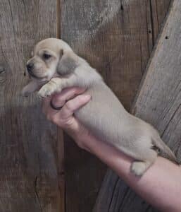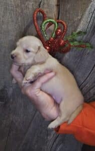 This is Mercy’s shaded cream smooth hair female AKC miniature Dachshund puppy #1 born 12-24-25
