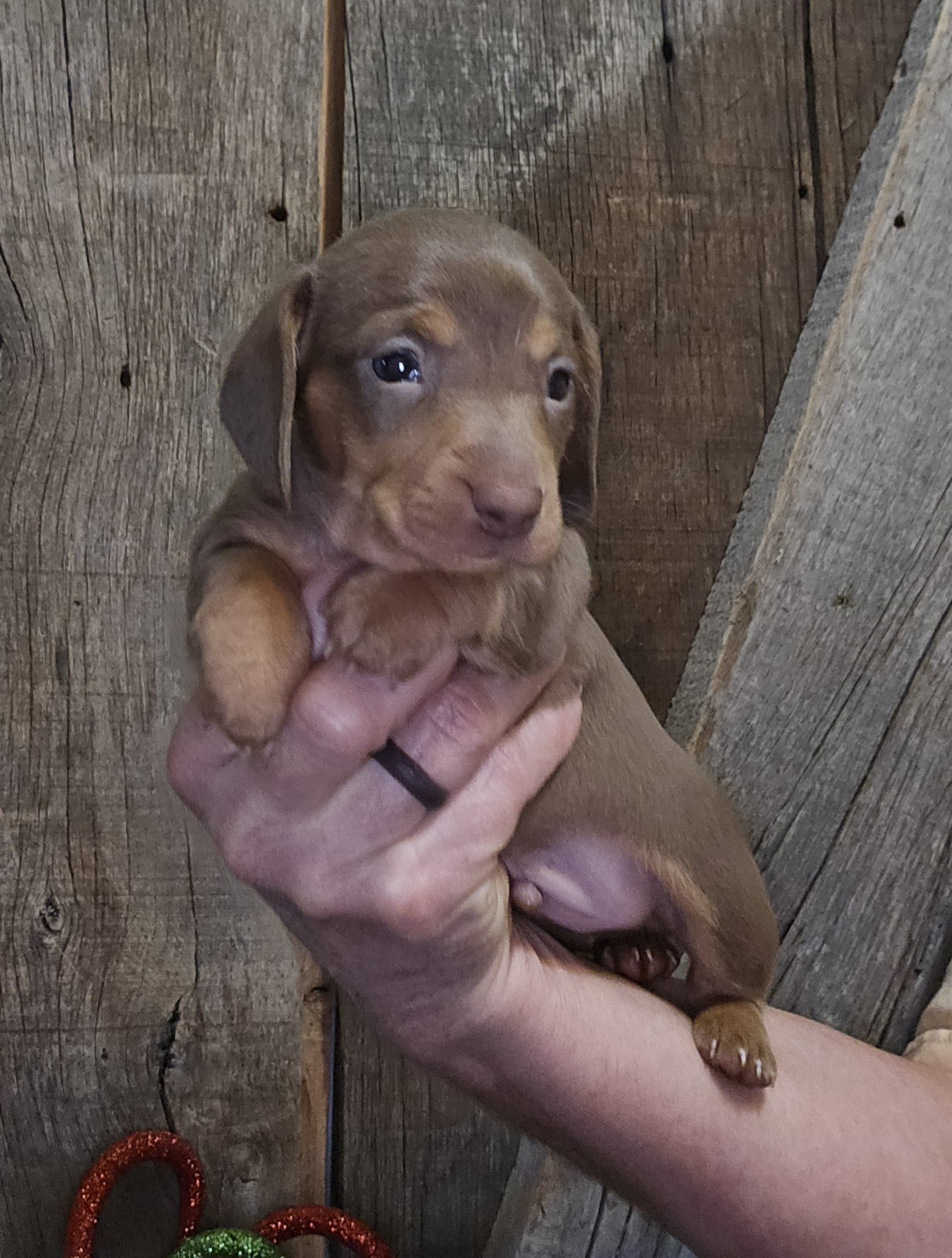 This is Tilly’s shaded red long hair male AKC dachshund puppy #2 born 11-19-25
