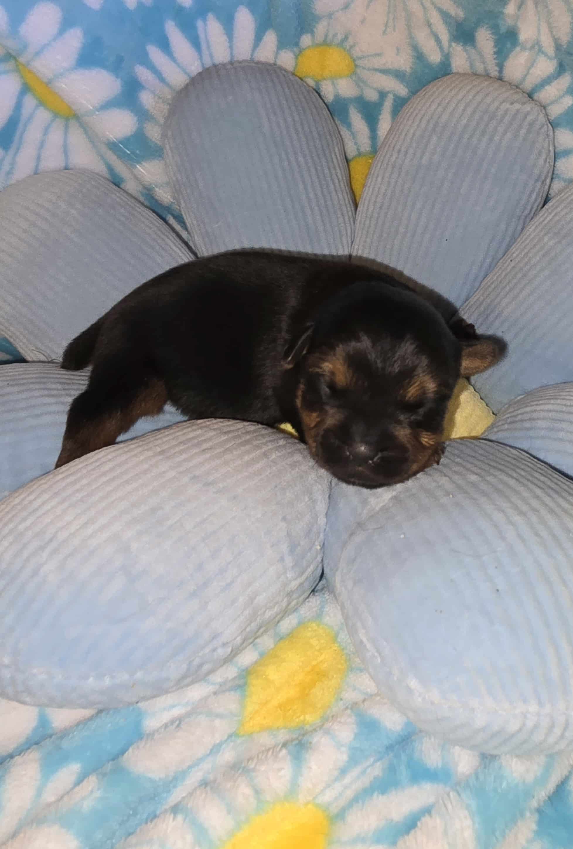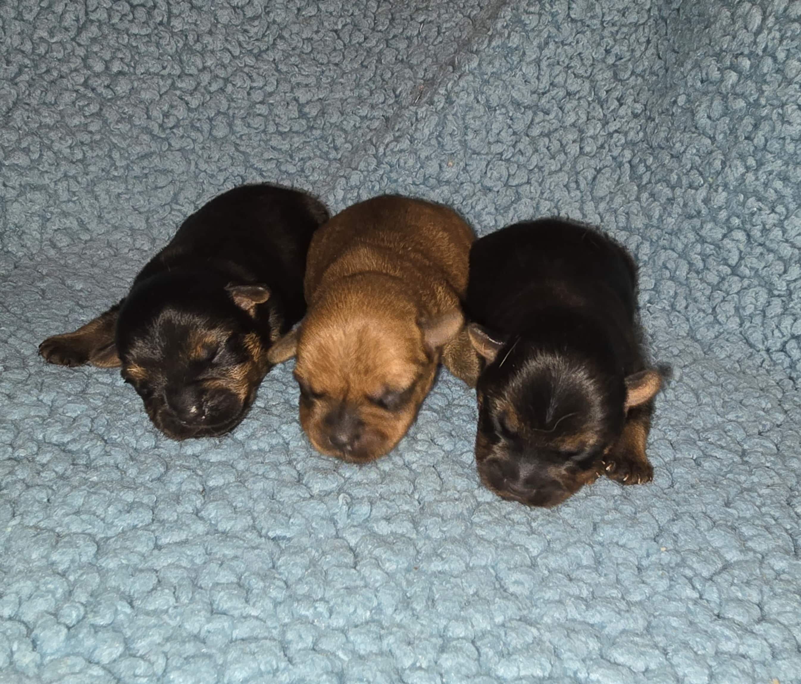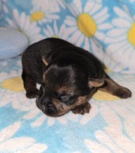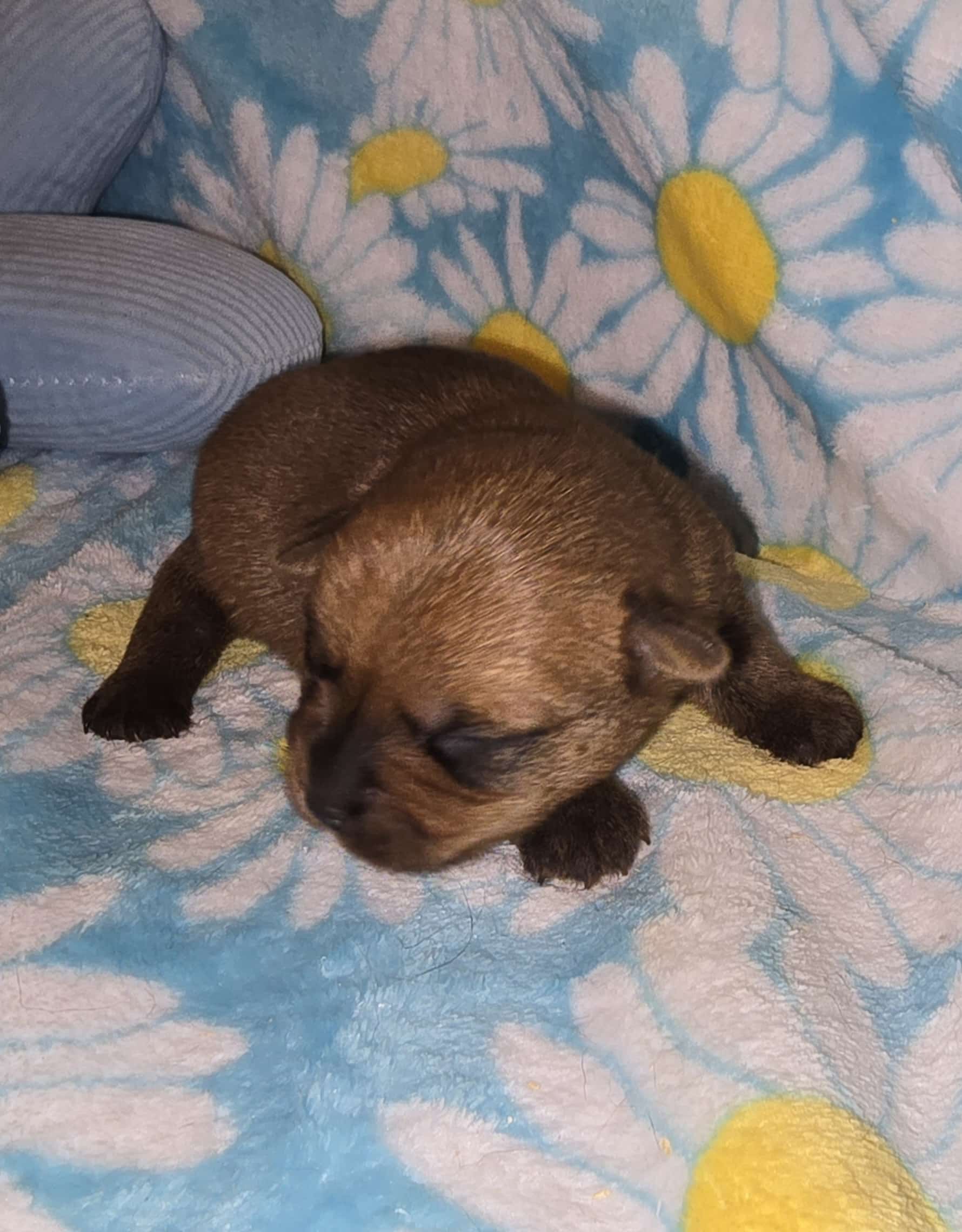 Red male Norfolk Terrier puppy #1 born 3-22-25.